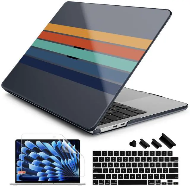 Includes: 1x matte Hard Case (Top & Bottom), 1x Matching Silicone Keyboard Cover (protects against dust/spills), 1x HD Screen Protector (anti-scratch), and 1x set dust port). ^^ "SECOND SKIN" AESTHETIC & 1.2MM SLIM PROFILE Weighing only 290g with a profile of just 1.2 mm, this case adds robust protection without the bulk. The high-gloss, semi-transparent finish creates a premium glass-like look, allowing the Apple logo to subtly shine through the specific pattern, blending technology with art. ^^ PROFESSIONAL HEAT DISSIPATION Designed for the fanless MacBook Air. The bottom cover features precision-cut ventilation grilles to promote natural airflow and heat release. Four raised anti-slip rubber feet increase desk grip and create an air gap for better cooling performance during long work sessions. ^^ DURABLE & SCRATCH RESISTANT Crafted from high-grade polycarbonate. The snap-on design with non-invasive micro clips makes installation easy and safe (won't scratch your bezel). Effectively protects your device from fingerprints, scrapes, drops, and daily wear while keeping all ports fully accessible.