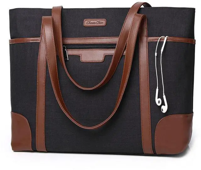 CLASSIC: The Chasechic tote bag is created from high-class and textured polyester, which is an elegant interpretation of the timeless classic style for daily use. Combined with the delicate PU leather trim shoulder straps and tote silhouette, is aiming to provide an exquisite appearance and extra support to carry heavy weight. Attached with a luggage trolley sleeve on the back of this fashion computer bag, it is practical to carry it for work, business trip and journey. ^^ SHOCKPROOF & FOR 15.6