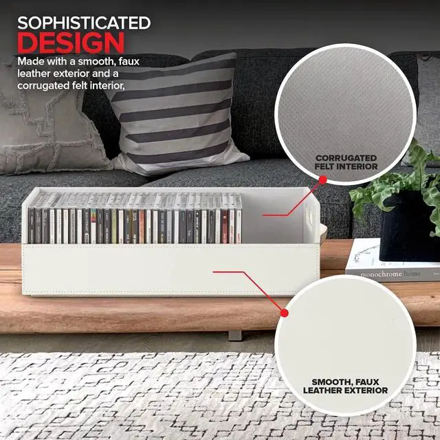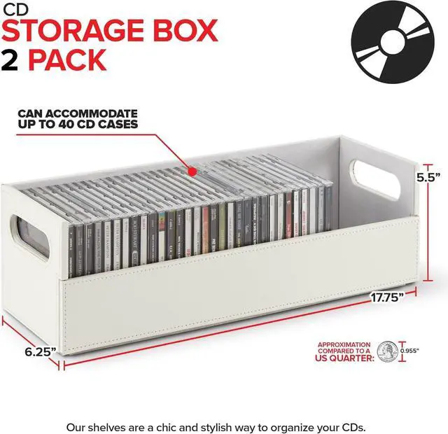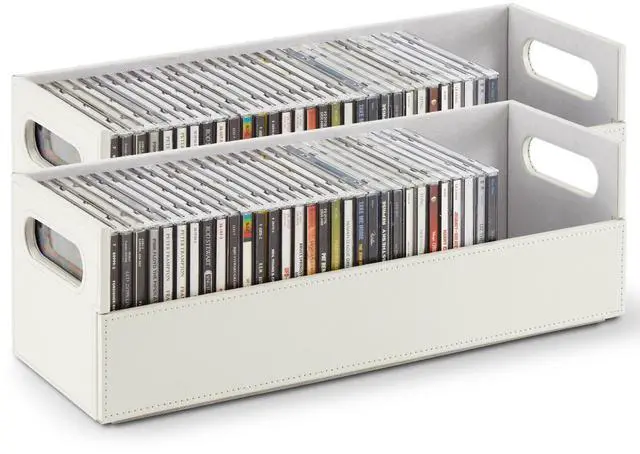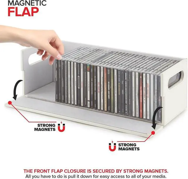 Keep all of your media neat and organized with our CD Storage Box. With a unique interlocking design, you can stack up and build the ultimate CD tower. The magnetic flap provides optimal visibility and easy access so you can find any album case. The sturdy handles make them easy to move to your ideal location. Our racks can also be used to store books, video games, cassettes, and more.