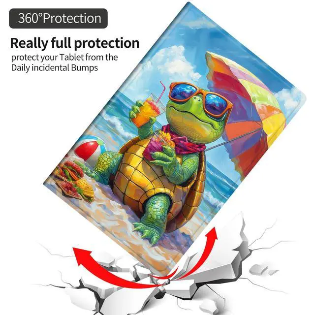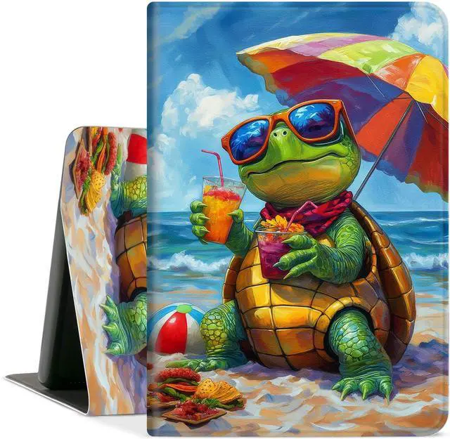 for Fire HD 10 Tablet 10 Plus Tablet Case (13th/11th Generation 2023/2021 Release) with Adjustable Stand, Auto Sleep/Wake for Kindle Fire 10 Case 10.1 inch, Cute Green Turtle Beach Waves