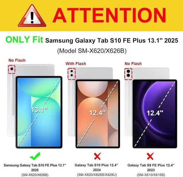 Compatible With Samsung Tab S10 Fe PlusThis case fits Samsung Galaxy Tab S10 FE+ 13.1-inch 2025 (Model: SM-X620/SM-X626/SM-X626B). Does not fit other tablet devices.