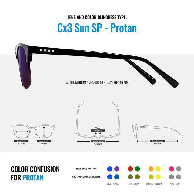 CORRECTS PROTAN COLOR BLINDNESS: Protan, which is about 25% of red-green color blindness cases, results in more issues with reds than greens. So, EnChromas Outdoor Protan lens boosts reds and normalizes the red-green ratio making colors more saturated and hundreds of hues visible and distinguishable. If you have Deutan color blindness, youll need a frame with our Outdoor Deutan lens. ^^