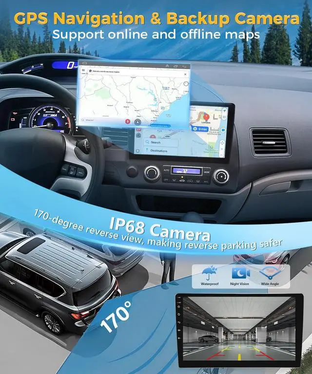 Use Siri or Google Assistant to make calls and send/receive messages, enabling you to focus on driving safely. The mirror link function for 2008 honda civic radio enables real-time projection of the phone screen onto the car's screen, offering a broader view ^^ Online and offline Maps/AHD Backup CameraFor 2006 Honda Civic radio, once connected to the network, it can access the latest traffic conditions and smartly plot routes. Offline navigation requires pre-downloading map data, allowing it to offer stable and reliable navigation guidance even in areas with no mobile phone signal.