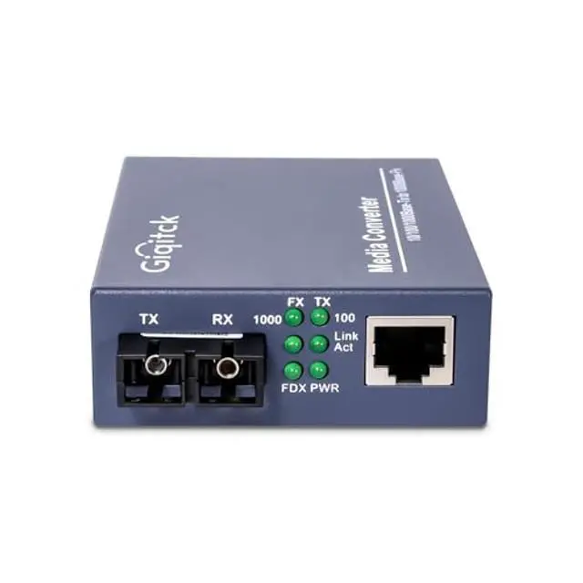 Gigabit Ethernet Network Media ConverterThe Gigabit Ethernet media converter enhances communication distance and efficiently transmits data through fiber optic cables. It is designed to meet the increasing demand for higher power requirements in network equipment like network cameras, VOIP telephones, wireless LAN access points, and other devices. By leveraging the RJ45 interface, this media converter enables the direct delivery of data and power to network devices without additional power outlets or electrical cabling. The media converters offer compatibility with a wide range of transceiver modules, including general 1000Base SFP transceivers, BIDI transceivers, CWDM transceivers, and more.