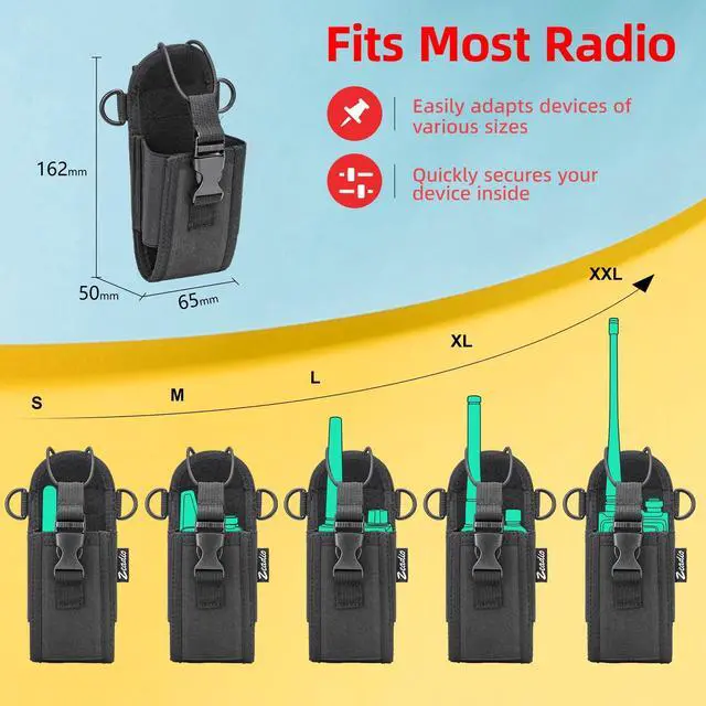 Nylon Construction: Crafted from high-quality 1000D nylon and high-elasticity rubber, this walkie talkie pouch is tightly structured to resist tearing, scratching, and daily wear and tear, offering reliable protection against impacts and ensuring long-lasting use for your radio. ^^ Adjustable and