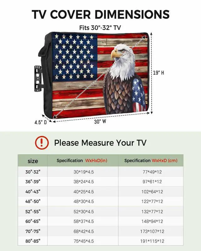 TV Cover Outdoor - Decorations & GiftsTV screen protectors uses double stitching to ensure that the outdoor TV cover retains its shape and looks great, making it a perfect outdoor decorations for patios/decks/yards/porchs, etc., and is also a wonderful Christmas/Halloween/Thanksgiving/Independence Day/birthday/housewarming gift for family and friends. Cover for Outdoor TV - Machine WashableOutdoor tv cover weatherproof are easy to care for and can be washed in the washing machine.
