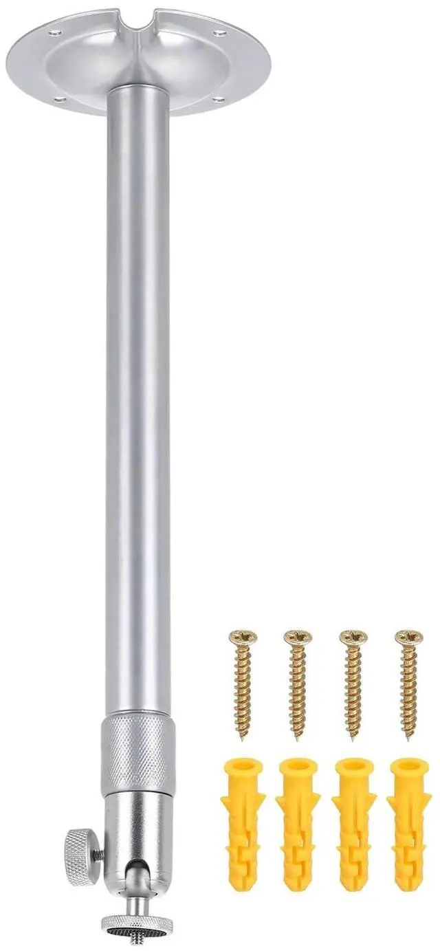 What is this? This adjustable projector mount stand is designed for secure overhead installation of your projector. It offers flexible extension and rotation to optimize your projection angle for a clear, aligned image in various settings such as home living rooms, bedrooms, offices, or personal mini theaters. What will I get?