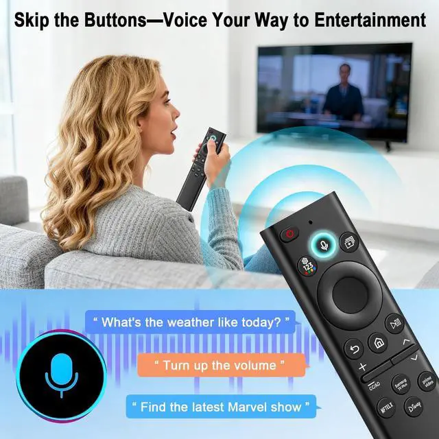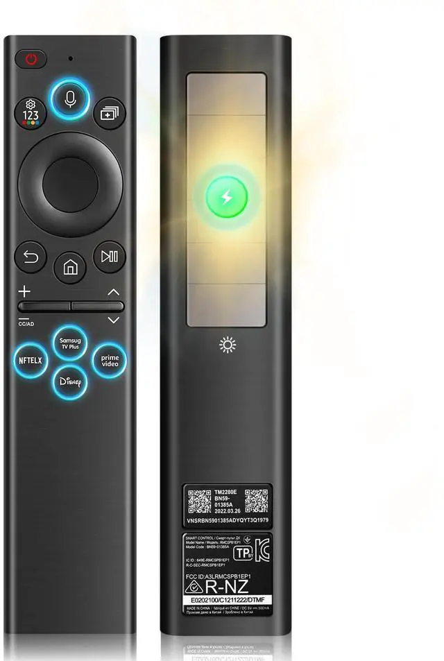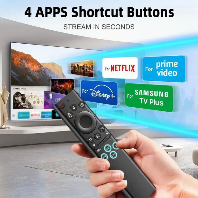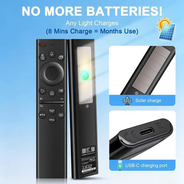 USB-C fast charging: just 8 minutes of charging keeps it running steadily for months. The battery boasts an ultra-long 10-year lifespan, so youll never need to replace it! ^^ Set up voice control featuresThis replacement voice remote for Samsung Smart TVs requires no extra configuration. Hold the voice button, speak your request, and instantly navigate to your favorite content. It also comes with 4 dedicated streaming shortcut keys for one-touch launch, ensuring fast and convenient operation. ^^ Wide Compatibility with