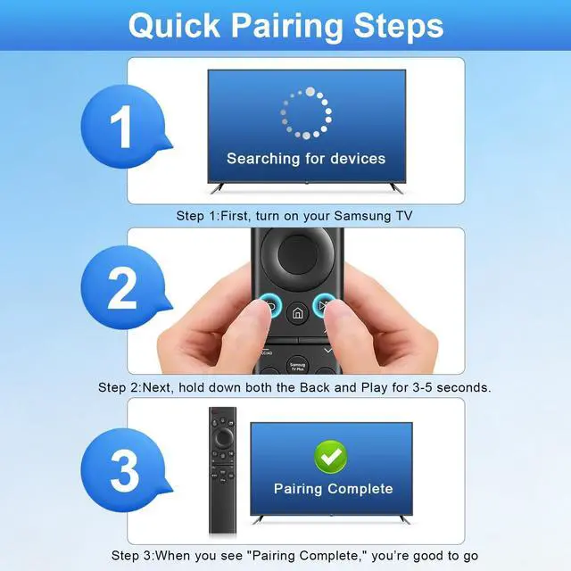 Seconds Quick Pairing: Aim the remote control at the TV's sensor area, press and hold the "Return/Exit" and "Play/Pause" buttons simultaneously for 5-7 seconds until the "Pairing Successful" message appears. If pairing fails on the first use, please check the remote's battery level and repeat the above steps.