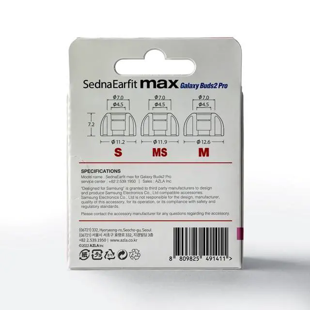 Samsung-Certified Eartips: Approved as Official Samsung Mobile Accessory Partner (SMAPP). Guaranteed perfect fit for Galaxy Buds 2 Pro, ensuring optimal sound quality and noise cancellation.