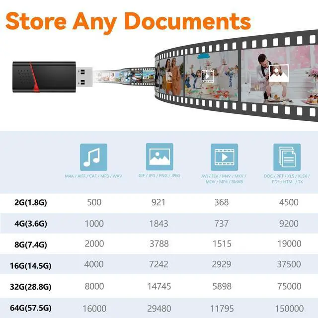 PLUG AND PLAY: The thumb drives 64GB are plug-and-play, requiring no software installation. Supporting Windows 7/8/10/11/Vista/XP/Unix/2000/ME/NT, Linux, Android, and macOS, and are compatible with PCs, laptops, TVs, cars, audio systems, and more ^^