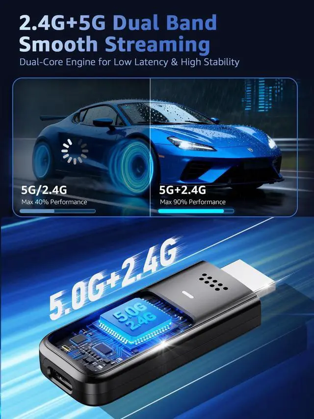 (Tips: Your laptops and tablets can only function as transmitters to send a signal, not as receivers to display content from another device. ) ^^ Dual-Band 2.4G /5G