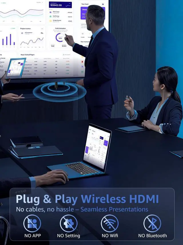 Connectivity: The Wireless HDMI Receiver offers an effortless plug-and-play experiencesimply plug the device into your TV, projector, or monitor and activate the casting function on your phone, tablet, or laptop. No apps, Bluetooth, or Wi-Fi setup is needed, allowing you to connect in seconds and enjoy smooth, cable-free streaming. Ideal for home theater, business meetings, and educational presentations.