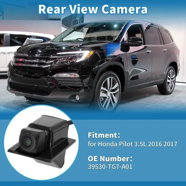 [Vehicle Fitment] This rear view camera is for Honda Pilot 3.5L 2016 2017. Specific fit license plate camera replaces No. 39530-TG7-A01/39530TG7A01. ^^ [Crystal-Clear Visibility] Ultra-clear image quality. There're anti-fog HD glass and color CMOS image sensors inside this backup camera reverse camera so as to provide satisfactory color reproduction and a clear view for car owners. ^^ [Night Vision] With 170 degree wide view detection angle and 1920x1080 camera resolution, it performs normally also as night vision camera, even in the faint light like a dark underground garage. ^^ [Waterproof] This parking assist camera has a waterproof rating at IP68 for all conditions like heavy rain or car washes.