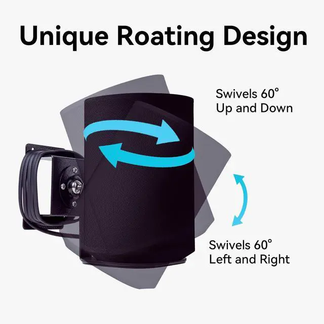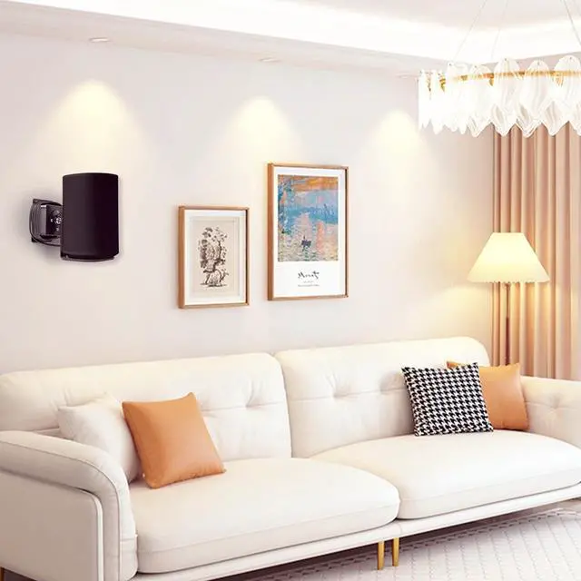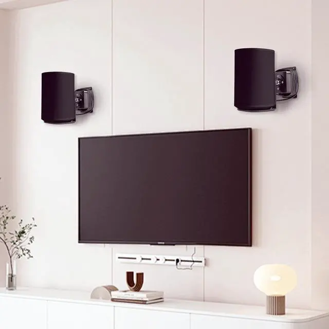 (Note: Only the wall mounts are included, no devices. ) ^^ The silicon pad on the support face is anti-slip and shock absorption which would protect your speaker sturdy. ^^ The unique roating design adjusts the angle and heights of the speaker to ensure a pleasant enjoyment effect. It allows the speaker to rest any position, it could be rotated 360 degree clockwise. ^^ There are cable slots on both side of the bottom of the stand where you can wrap the excess cables to make your space tidy. ^^ Installation is simple; only four stainless steel screws are required for fixation.