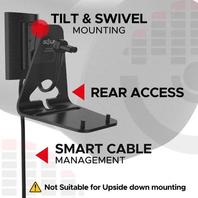 TILT AND SWIVEL FOR CUSTOMIZED AUDIO: Experience complete control over your listening experience with our mount's wide swivel range of 30 left/right (wall to wall) and tilt of 36 down/4 up. Easy, tool-free adjustments allow for personalized audio positioning, ensuring the best sound quality in any room setup. ^^ PREMIUM BUILD, SUPERIOR