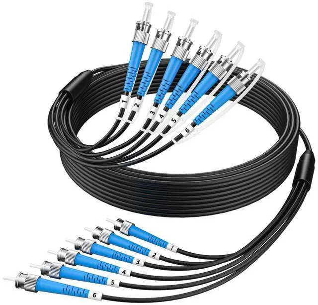 30M/99ft 6 Core OM3 Multimode ST to ST Outdoor Armored Fiber Patch Cable, Direct Burial 6 Strands Fiber Optic Cable 10GB/40GB, Industrial TPU, MMF 50/125um ST-ST 6 Fibers Optical Jumper, OD-5mm