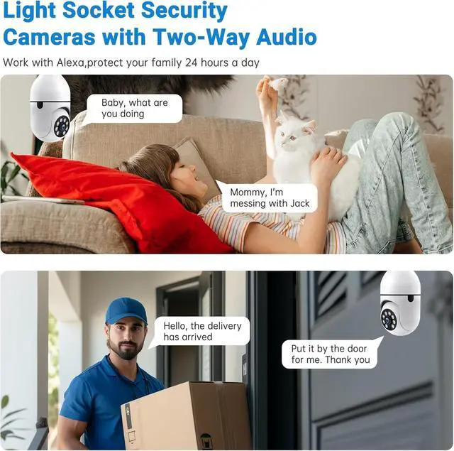 Two-Way Audio & Real-Time Alerts: Screw in camera for light socket outdoor bu