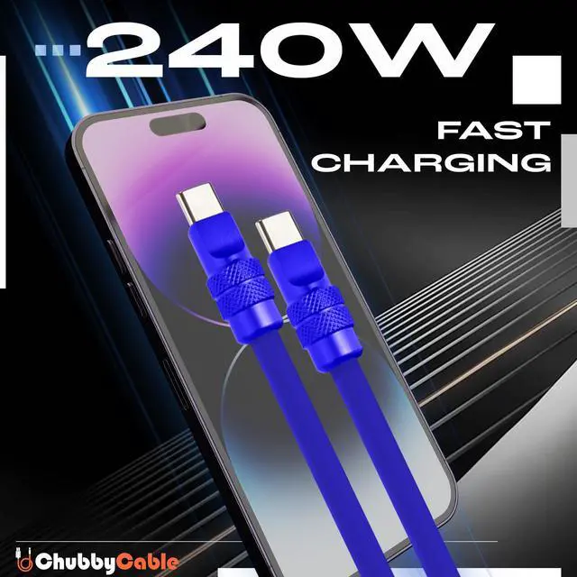 ANODIZED REFLECTIVE FINISH: Crafted with a premium anodized aluminum shell, the ChubbyCable 240W USB-C cable delivers a stunning reflective shine that enhances its sleek, futuristic look. The metallic surface resists fading, scratches, and corrosion, maintaining a like-new appearance even after long-term use ^^ 240W