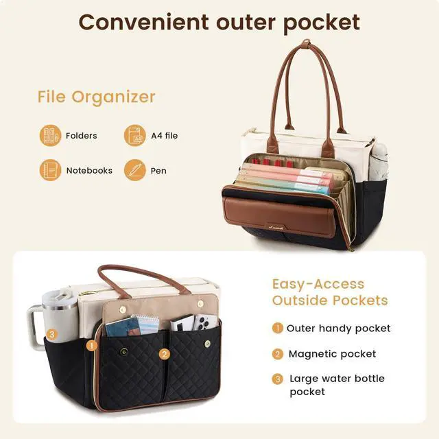 Accordion File Organizer Stay Professionally Organized. Designed for teachers, nurses, and busy professionals, this LOVEVOOK tote bag features a built-in accordion file divider with 4 compartments for A4 documents, lesson plans, or patient charts. Whether you use it as a work bag or a tote bag for college, it keeps all your papers flat and instantly accessibleno more digging through loose sheets during class or shift change. ^^ Beauty Meets UtilityThe front magnetic snap pocket offers instant access to your phone, badge, or keysno zippers, no delay.