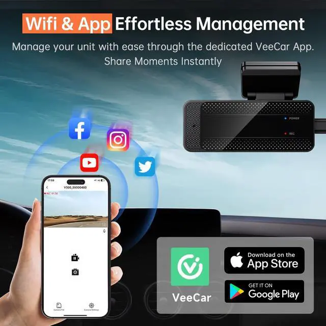 Superior Night Vision & Expansive ViewVeement V300 hidden dash cam for cars features a starlight-level sensor, F=1.7 large aperture, and a 170 ultra-wide lens, allowing it to capture clear, detailed video even in low-light environments. With six-layer glass lens technology, this dashcam enhances your night driving security, ensuring no detail is overlooked.