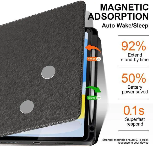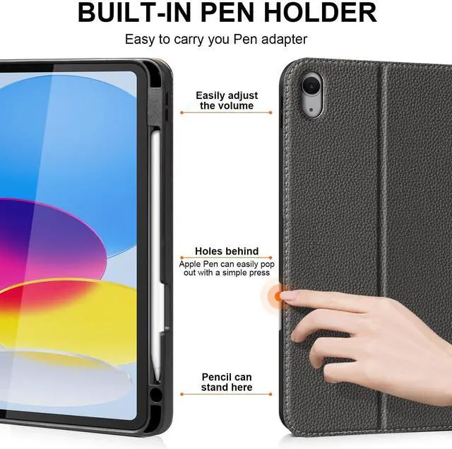 Generation 10.9 -inch 2022 (Models: A2696/A2757/A2777). Please verify your model number before purchase to ensure compatibility. ^^ Premium Leather Material Crafted with top-grade microfiber leather that combines the luxurious feel of genuine leather with enhanced durability. Features a smooth, skin-friendly surface that is scratch-resistant, breathable, and easy to clean, maintaining a pristine appearance even after extended use. ^^ Full Protection & Precision Design Three-layer protective structure: leather exterior protects camera and body, super-fiber inner lining safeguards screen, and TPU inner shell provides full-body protection. Precisely tested cutouts ensure complete access to all ports, cameras, speakers, and buttons. ^^ Apple Pencil Integration & Smart Features Built-in magnetic holder compatible with Apple Pencil charging and attachment (pencil not included). Auto wake/sleep function helps conserve battery life. Adjustable stand offers multiple viewing angles for typing, watching videos, or drawing. ^^ Reliable Customer Support Backed by responsive customer service available through Message Center. We provide prompt solutions and ensure your complete satisfaction with our product.