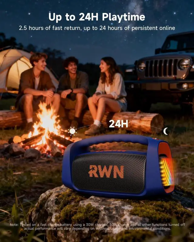 ^^ 24-HOUR BATTERY LIFE: 30W fast-charging bluetooth speakers wireless, surpassing most similar products on the market. Whether it's an all-day beach party or a long-distance driving trip, it should transform into a mobile charger in time to completely solve the power anxiety in outdoor activities. ^^ 6