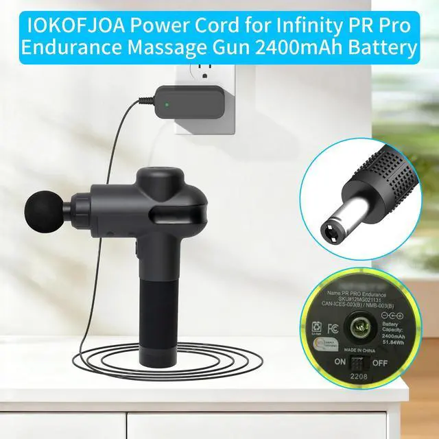 CompatibleCompatible with Infinity PR Pro Endurance Wireless Percussion Massage Device Deep Tissue Body Muscle Massager Gun. ^^ SpecificationsAdapter power cord for Infinity Massager Gun, have extra long 180cm/ 5.9 ft power cords;