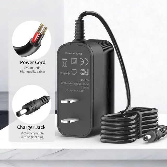 Output: 24V 1A; Input 100-240V / 50-60 HZ. ^^ NoteRechargeable batteries have a limited lifespan, with an average service life of 1 to 3 years. If the battery becomes aged or damaged, it will no longer charge. This condition is unrelated to the charger. ^^ SafetyThis adapter power cord undergo multi tests, it is certified and built-in multi protection system to support over-voltage, over-load, over-current, over-heat and short-circuit protection. to ensure safe and available. ^^ What You Get1 x Replacement adapter power cord, 30 days refund 12 months exchange and our friendly after-sale service, Please feel free to contact us at anytime if you need any help while using this charger.
