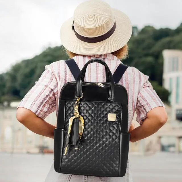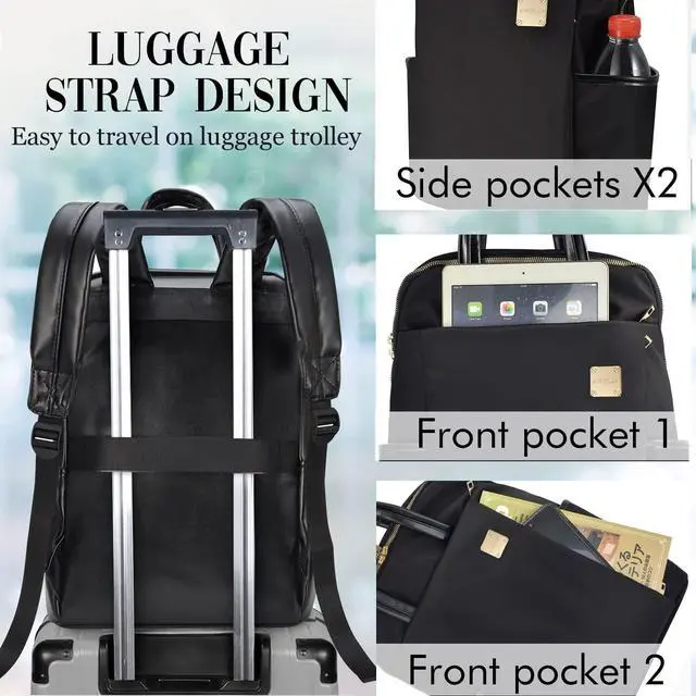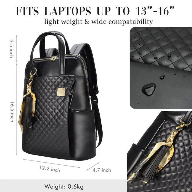 ^^ It is made of high-quality leather. It is durable, lightweight, water resistant and anti-scratched. ^^ In order to ensure durability, we use high quality Nylon, zippers, buckles, linings and padded EPE foam. ^^ It is good for travel. The luggage strap allows the laptop backpack to slide over the luggage tube. ^^ The laptop compartment is fully padded with EPE foam to 360-degree protect your laptop.