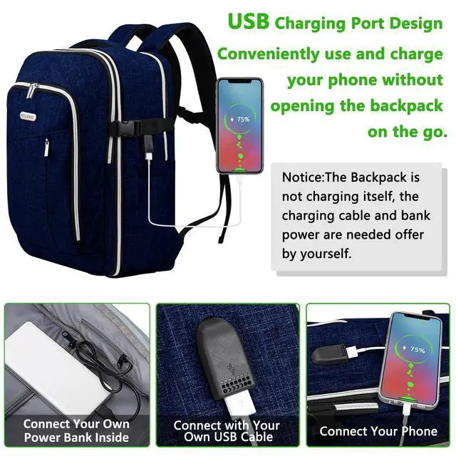 ^^ User Friendly Design: You can charge the phone via the built-in charging port so that you dont need to take the portable charger all the time. Just keep your phone powered up on the go. The backpack with luggage strap is easy to transport.