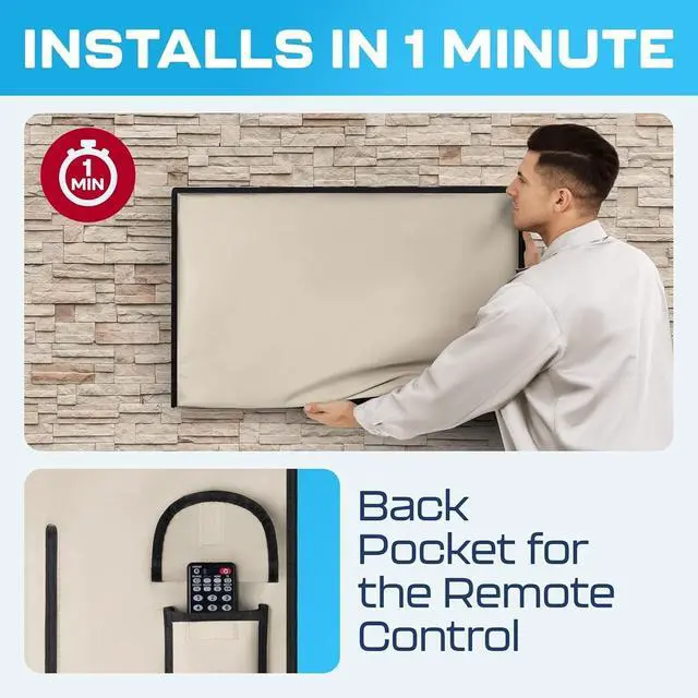 If you are looking for an outdoor tv covers that will last, our outside tv cover has the best material in TV protector production, we used Oxford 600D fabric complemented by the PVC coating inside. ^^ EASY TO INSTALL. You wont need any special skills to install this tv screen protector 43 inch around the mount on the wall or on the ceiling. The weatherproof tv cover outdoor slides easily to any television and mount. ^^ PROTECTION FOR LONGER TV LIFE - Your Outdoor TV Cover 40 Inch Waterproof can suffer in various ways from moisture, erosion, and dust, and an outdoor waterproof tv enclosure is the solution.