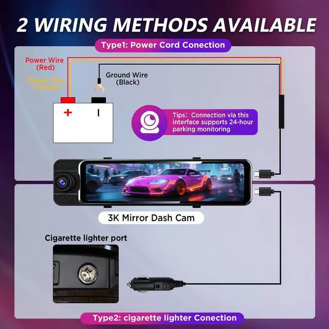 You can view, edit, and create videos on your phone, and share them to TikTok, Facebook, YouTube, X, and other platforms anytime, anywhere. ^^ Super Night Vision & IP97K WaterproofThis 3 Channel Rear View Mirror Camera features super night vision with a professional sensor and WDR/HDR technology. It captures clear recordings in low light, balances brightness automatically for great image quality, and performs well at night. The rear camera is IP97K waterproof, ensuring high-quality imaging in all weather. ^^ Easy Installation & Wide CompatibilityThis 11-inch mirror dash camera is easy to install and fits most vehicles, including cars, SUVs, trucks, and RVs.