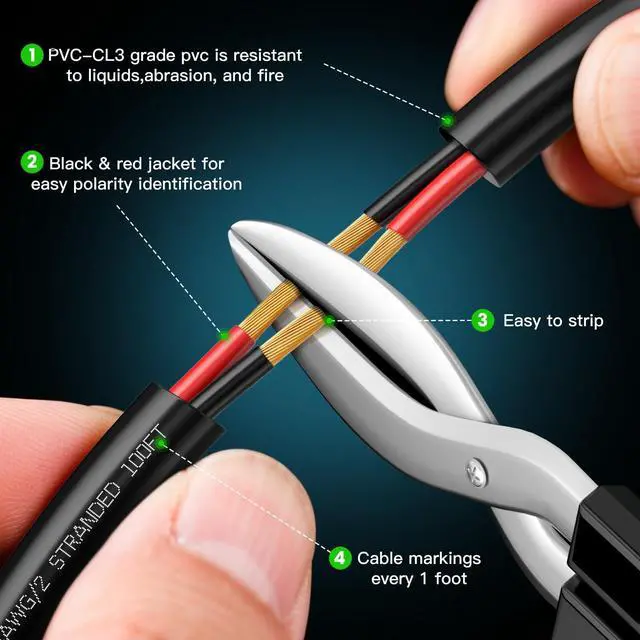 Tough & Weather-Resistant: Constructed with high-quality 14/2 AWG wire, this outdoor speaker wire is built to withstand harsh weather. UV-resistant and water-resistant, it provides reliable, long-lasting performance for your outdoor audio systems.