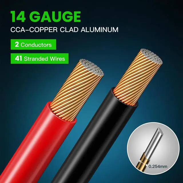 ^^ High-Performance Sound: This high-quality copper-clad aluminum speaker cable can meet low signal loss requirements, and deliver crystal-clear audio, making your music, movies, and podcasts sound fantastic, regardless of weather conditions.