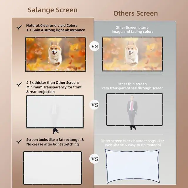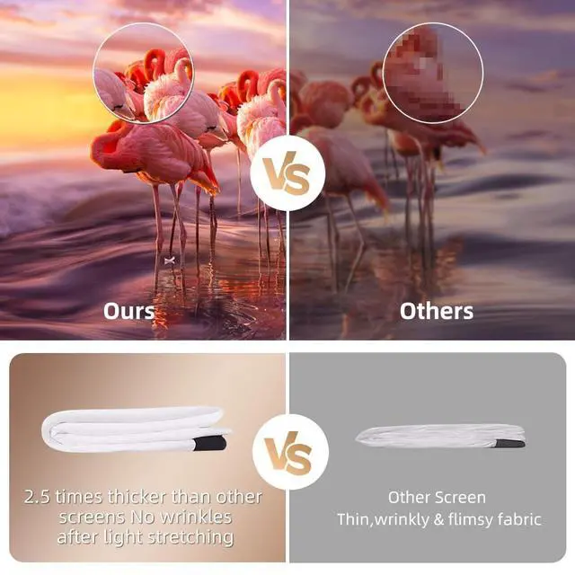 [ANTI-CREASE & FLATTER SURFACE WITHOUT DEFORMATION ]: This outdoor projector screen portable adopts a surrounding black side tension structure to make the screen surface flatter and the black side is straight without sagging and the rectangular effect is perfect without wrinkles, deformation, and wrinkle-free fabrics. ^^ [4-LAYER