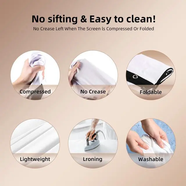 THICKEN MATERIALS & HD DISPLAY]: Projector screen is made of an exclusive material formula, safe, environmentally friendly, soft comfortable in texture, and very anti-wrinkle, allowing you to fold and clear at will without any creases. Most importantly, the special 4-Layer thicken materials used in our screens which enhance the image projected effect, are brighter and sharper, bring you the best watching experience. ^^ [SUPER