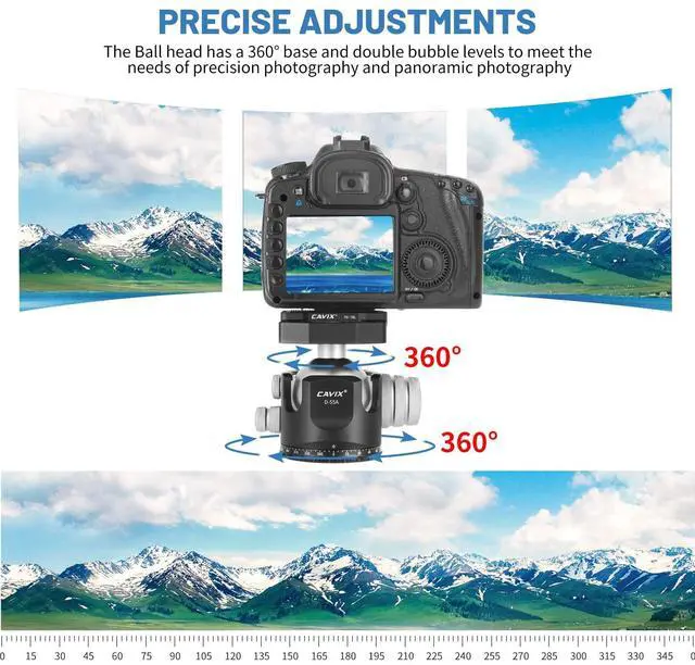 Compatibility: Equipped with a standard 1/4" quick-release plate and a 3/8" base thread, this low-profile ball head serves as a central hub. It securely fits most DSLRs, camcorders, spotting scopes, and attaches seamlessly to tripods, monopods, and sliders.