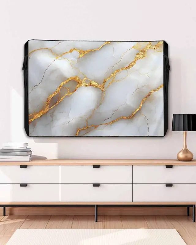 Outdoor TV Cover Grey White Gradient Marble Weatherproof Waterproof Outside TV Protector with Zipper,Abstract Stone Gold Foil Stripe Smart Television Screen Cover for 70 to 75Inch Screens