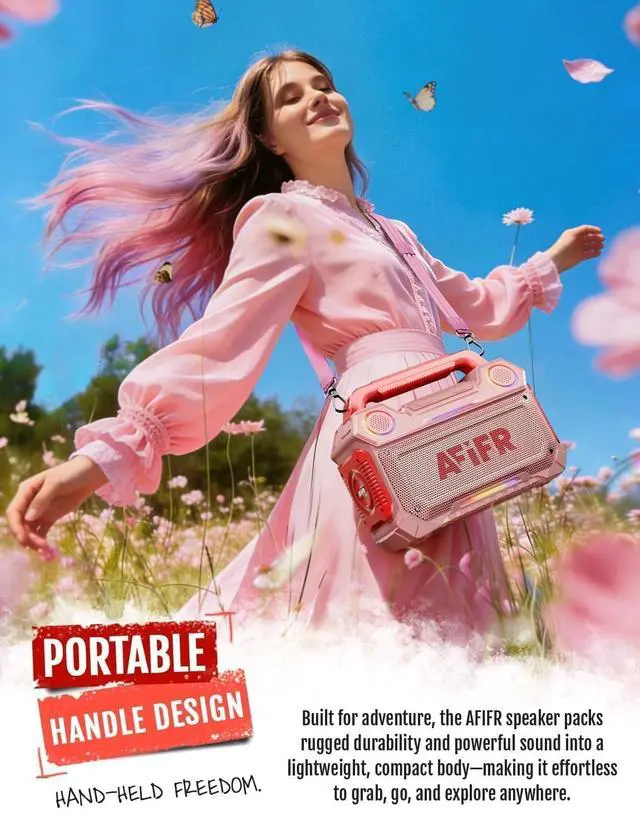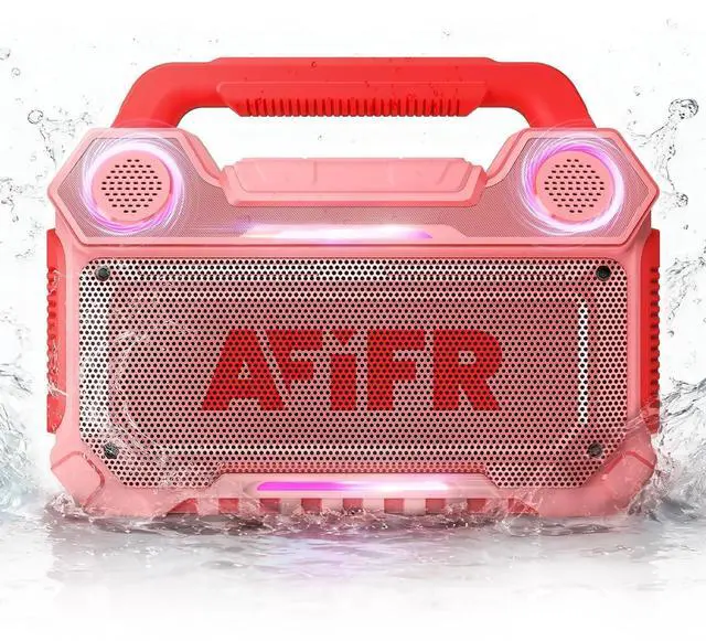 AFIFR Outdoor Bluetooth Speaker, 160W Loud Bass! Rugged, IP67 Waterproof, 24H Playtime with Lights, Wireless TWS Pairing Portable Speakers for Party, Outsides, Travel, Beach, Garage (Rose Blaze)