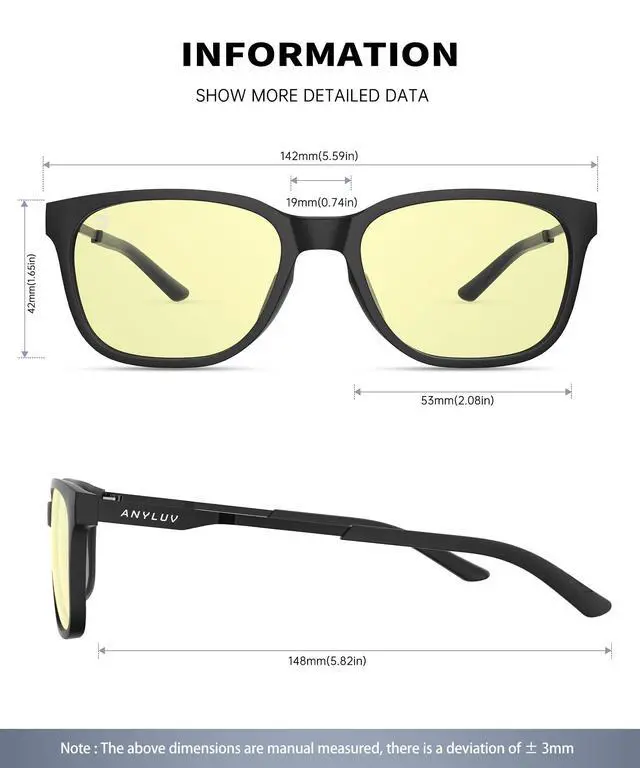 EYE PROTECTION: With the increasing use of digital devices, protecting your eyes from high-energy blue light is crucial. ANYLUV blue light blocking glasses offer a reliable solution to reduce the risk of discomfort and long-term sight conditions, ensuring your eyes stay healthy and refreshed.
