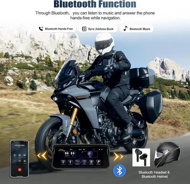 The powerful high-performance chip ensures smooth operation, while the versatile TF card reader (supports up to 128GB) lets you quickly access your personal music, videos, and photos directly on this portable CarPlay screen ^^ [CRISP AUDIO & UNIVERSAL COMPATIBILITY] - Stream music or take calls wirelessly via the integrated Bluetooth audio transmission. This versatile unit is designed as a multiple adaptable system, serving as a comprehensive motorcycle GPS unit and media center compatible with a wide range of setups ^^ [EASY MOUNTING & ADJUSTABLE VIEWING] - Installation is straightforward with the included universal bracket.