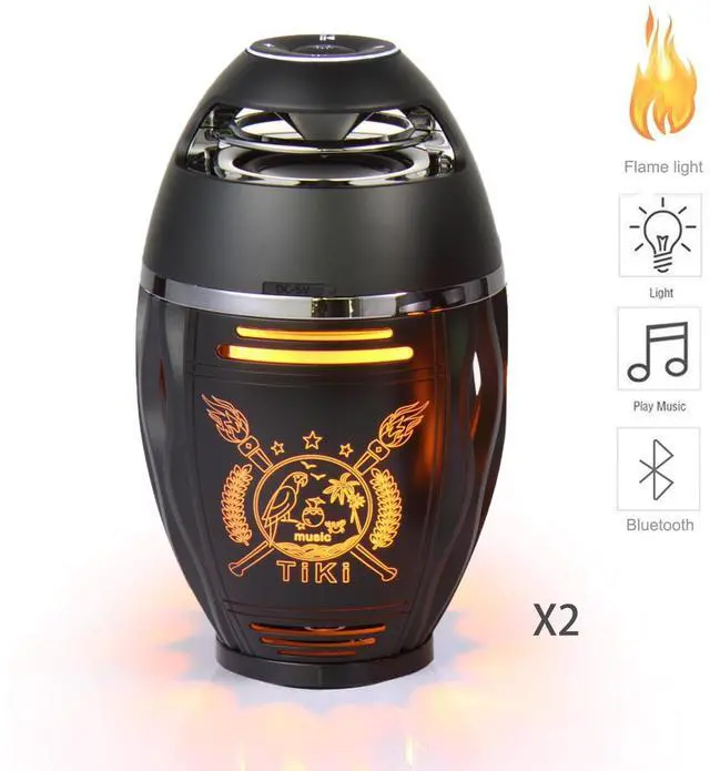 LED Flickering Flame LightThe portable wireless speakers use numerous LED beads and unique dynamic design which makes it can be used as independent flame lamp. The vivid flame flickering effect can give people a relaxed and leisurely feeling. If you are picking a gift for anyone, these outdoor bluetooth speakers are the gifts for men. ^^ Unique TIKI & Tropic Patterns Design In addition to the normal lantern appearance like most product, we have also added two patterns including TIKI and tropical style to this flame table lamp, which adds 2 different artistic effects, making it no longer monotonous, but more lively and rich.