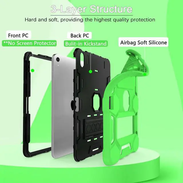 [Note: Package Without the Pencil] ^^ Upgrade Kickstand10th generation ipad case built-in sturdy kickstand, extremely convenient and easy to push out and back in. Allows easy access to your favorite shows, movies, and games while on the go. ^^ Kids Proof Three Layer design combines a premium shockproof silicone outer layer with a hard PC cover; excellent ipad 10.9 inch case for children and withstands accidental drop, bump and shock damage. Great ideal for kids, students, teachers, or engineers. It is the best choices for kids, boys, husband, boyfriend, family and friends.