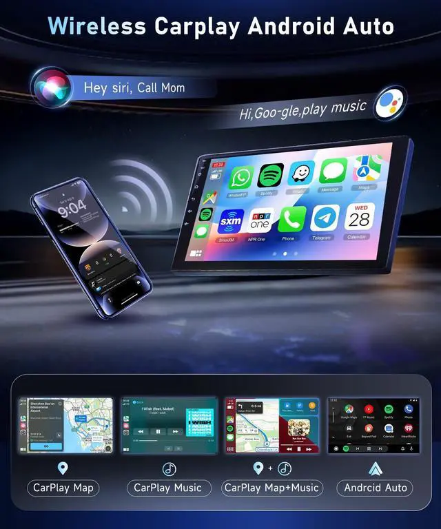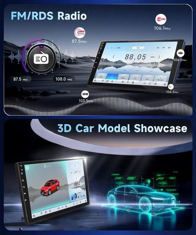 2. Never lose your way with built-in offline maps, and charge your devices with double USB interfaces. 3. Experience 3D Car Dynamic Effects for an immersive driving atmosphere ^^ Advanced Compatibility & Voice ControlThe Toyota Camry carplay screen for car supports for reversing cameras (1080P IP69 Waterproof), driving recorders, and MICs enhances safety and convenience. Hi-Res audio and voice control make operation intuitive, while the global weather display keeps you informed no matter where you are(Note: Please kindly know this car stereo can't work for car has original J-B-L/B-OSE audio system)