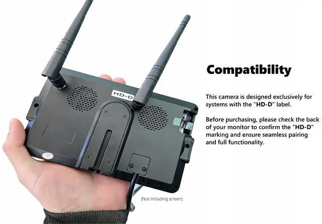 CompatibilityWorks with BC103BC104BC701BC702BC703BC704BS701BW101SL-M BW103SL-MBW104SL-MHW02-MSW01-MB3C-MB4C-MB701-M only. (The compatible system features an HD-D label on the back. ) ^^ NOT compatible with BW7MBW7BW101SLBW103SLBW104SLHW02SW01B3CB4CB701W01WX02BSC701 BSC702BSC102BD701BD702BM701BD102 systems, mobile phones, tablets ^^ Optimal Viewing AnglesRotates 360 for flexible side viewing for safer reversing and lane changes. IP69k WaterproofResistant for reliable performance in any condition. ^^ Stable SignalThis side camera utilize 2.4 ghz frequency signals to transmit image footage to a connected device. ^^ Effortless Installation & RemovalFeatures a built-in rechargeable battery for true wire-free installation no hardwiring required. Equipped with a strong magnetic base for instant, tool-free mounting no drilling or screws needed.