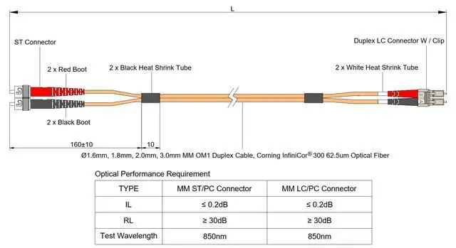SpeedyFiberTX Multimode OM1 Duplex Slim Fiber Patch Cable, Corning Multimode OM1 InfiniCor 62.5 /125um FiberSpecifications Insertion Loss 0.2 (dB) Return Loss 30 (dB) Operating Temperature -20C to +70C Operating Wavelength 850nm and 1300nm Optimized Data Rate over Distance 1GB/s over 300m at 850nm ^^ 1 GB/s over 550m at 1300nm Compliance UL, CE, IEC, TIA, RoHSFeatures and BenefitsLightweight and 2.0 mm slim flexible Riser OFNR zipcord cable jacket Pre-terminated with durable connectors and ready for deployment Easy to identify fiber channels with color-coded boots Every termination is tested to ensure quality in network performance Our proprietary manufacturing processes and advanced technology result in quality guarantee
