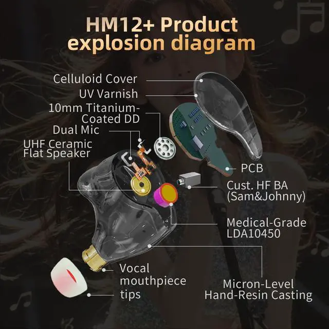 Studio-Level Triple Driver Sound System Each earbud features a 10mm titanium-coated dynamic driver, custom high-frequency balanced armature, and ultra-high-frequency ceramic planar driver for incredibly detailed audio across a wide 20Hz20kHz frequency range. ^^ Lightweight & Ergonomic Comfort Design Handcrafted with premium resin molding technology, these earbuds are 30% smaller than typical wireless earbuds and weigh only 5.8 g per sideproviding a secure, comfortable, and fatigue-free wearing experience. ^^ 30dB Passive Noise Isolation Technology The patented ear cavity structure offers excellent passive noise isolation comparable to 30dB active noise cancellation, effectively reducing external noise without consuming extra power.