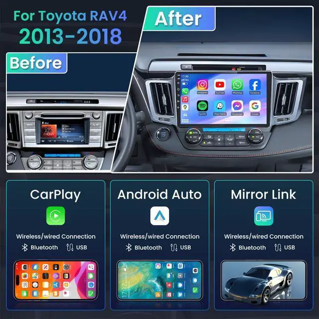 Perfect Fit for RAV4 StereoRadio for Toyota RAV4 2013 2014 2015 2016 2017 2018. Comes with adapter, power cable, microphone, 1080P Backup Camera and any accessories you need. Plug and play, easy to install. Support mirror link, to sync your smartphone to the radio screen ^^ Powerful PerformanceAndroid 13, true octa-core processor, with 4GB RAM + 64GB ROM. 8-Core beast mode mean this baby doesnt flinch. Snap between TikTok, Telephone, GPS Navigation, Radio, Music and a zillion Chrome tabs like its NBD. Smooth as butter, zero lag.