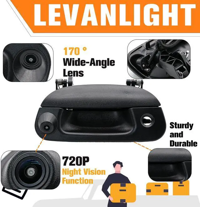 ^^ Function: It has a 720P clear image and good night vision function. The 170 wide-angle lens allows you to have a wider field of view, and the camera has an IP67K waterproof standard. The tailgate is made of high-quality ABS plastic and has undergone surface treatment, making it sturdy and durable.
